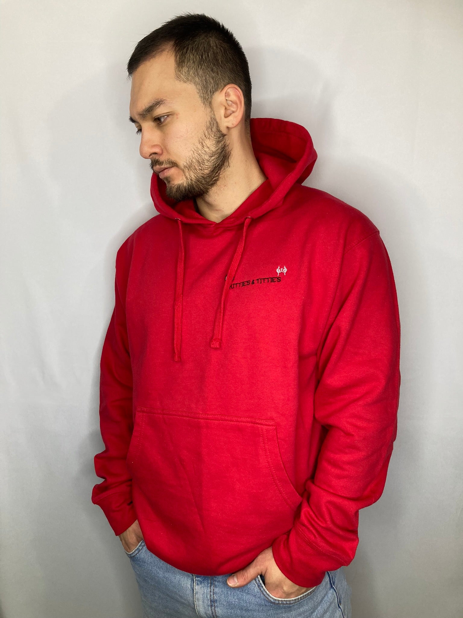 Dive into sensual comfort with our budget friendly KnT Hoodies, teasingly adorned with a kitty logo that adds a playful sexiness to your style. The cotton based fabric caresses like a cozy feline companion, making comfort and affordability as irresistible as a subtle peek of titties. Elevate your wardrobe with this seductively affordable piece that merges the purr-fect balance of sexy and snug.